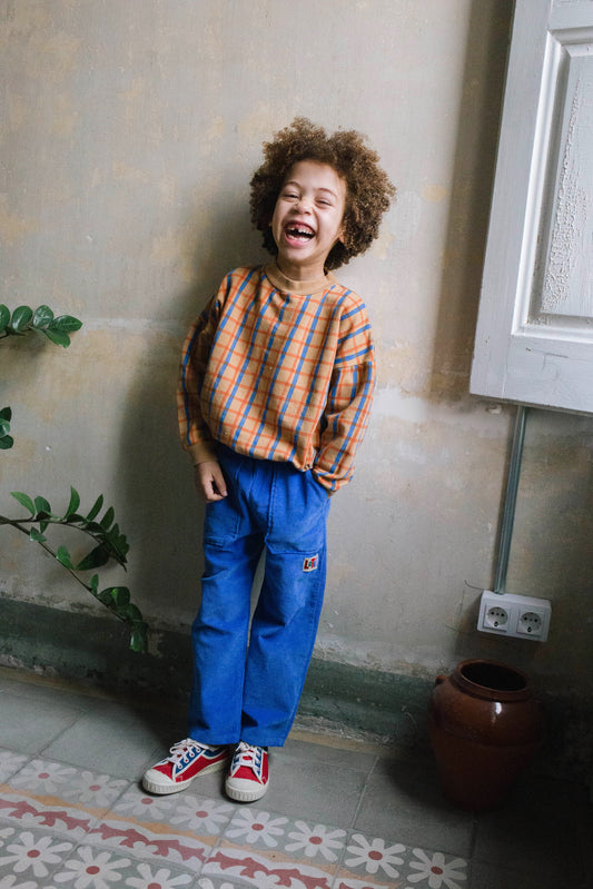 Corduroy Wide Pants Checks Toasted Lötiekids